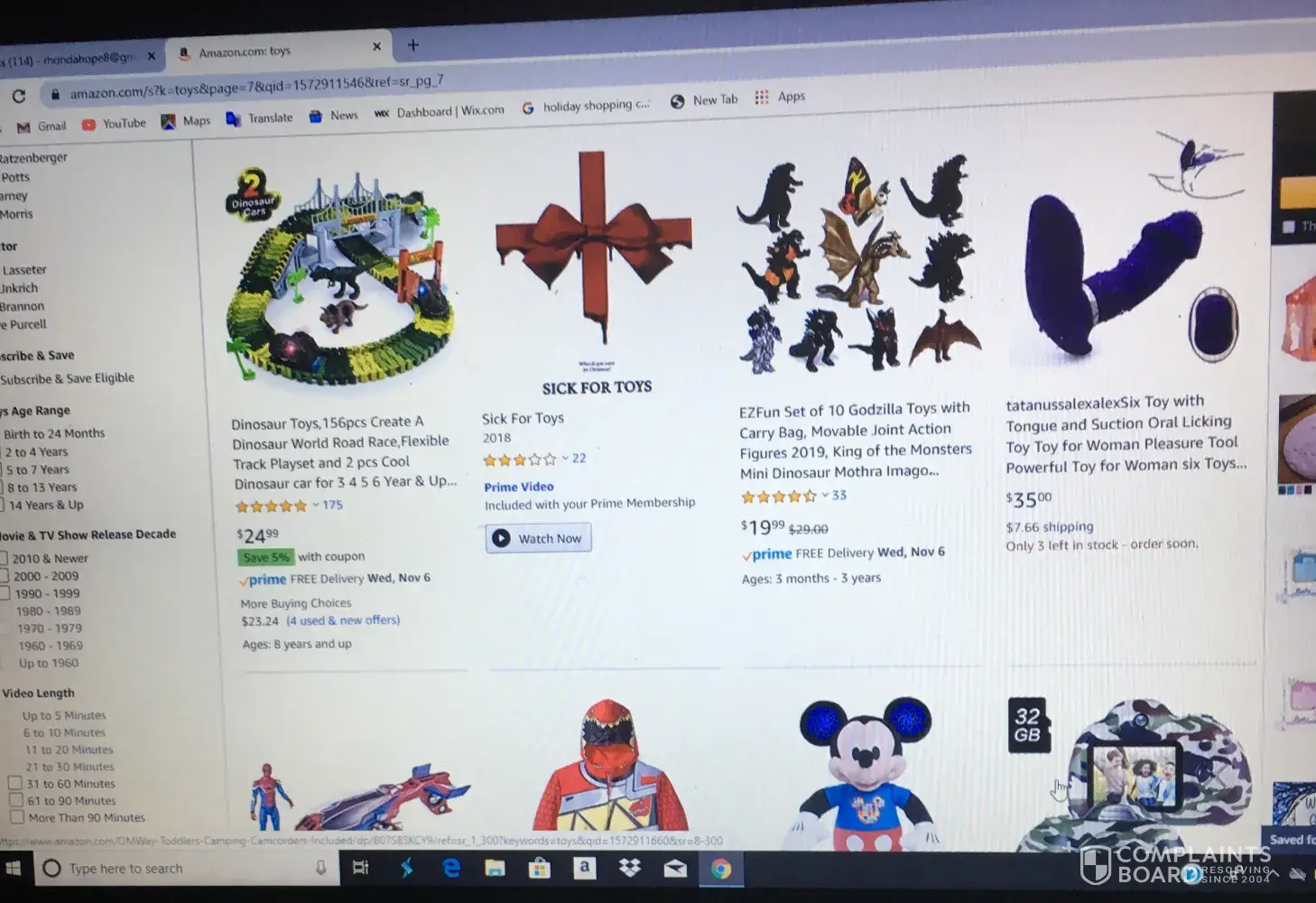 This is a very serious complaint and concern that we are issuing to amazon we hope that this complaint would be resolved immediately my wife was browsing on you guys website for christmas gifts in the toy section and this is what we seen which is very disturbing