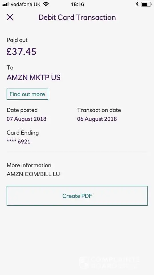 On the 6th of August 2018 my Amazon account was stolen and fraudulently used for 4 transactions on Amazon US - the transactions appear on my bank statement in UK in British pounds as the following amounts - £37.45, £24.95, £129.74 and £93.49 - the charge descriptor on the bank statement is - AMZN MKTP US, (also mentioned on the bank statement is - AMZN.COM/BILL LU), furthermore the last 4 digits on the credit card that was used fraudulently are: 6921. The transactions were done on the 6th of August 2018 and appeared on my bank statement the 7th of August 2018.