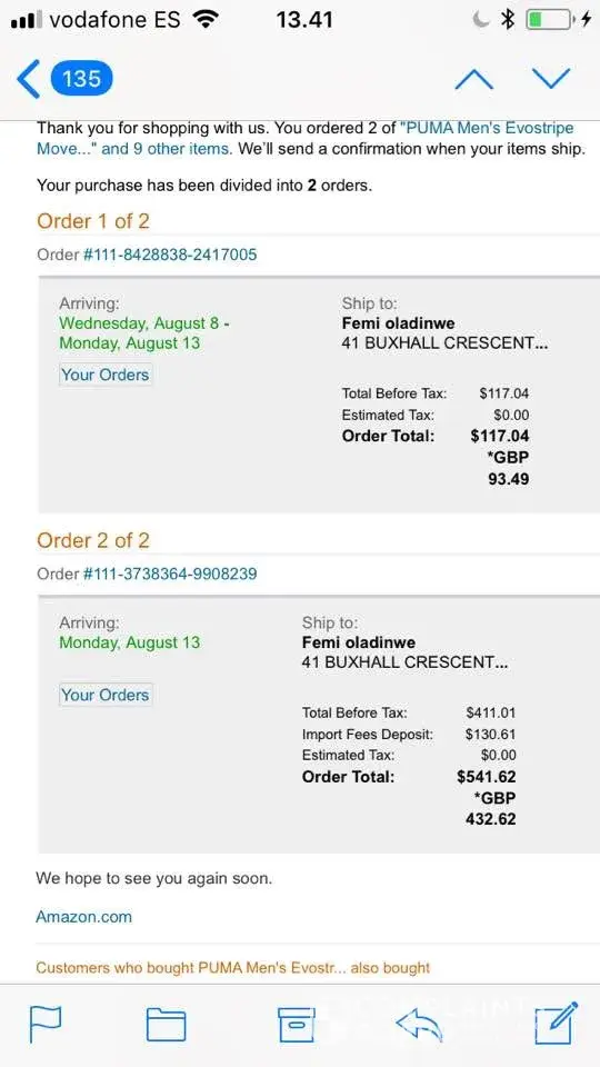 I'd like to file a complaint with regards to a refund, that I still haven't received from Amazon and I'm not really sure why I haven't received it yet, as I have passed on all the information and evidence that they have asked for in emails, in order to process the refund, but I don't hear anything back. Here is some information to help you understand the situation, (please see the text below and attachments 😌).
