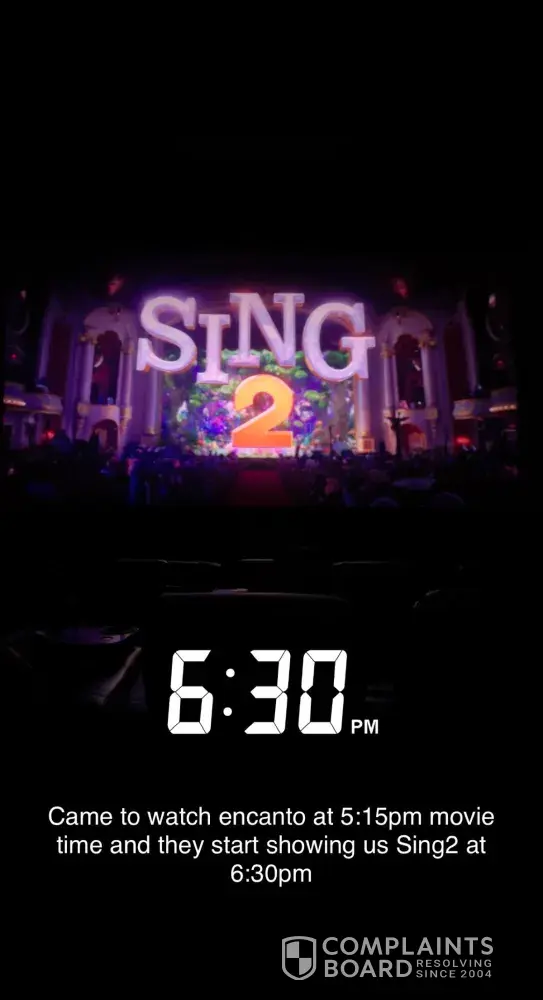 I took my children January 17 at 12:45 to see the movie sing … I had a complementary Check out along with three other tickets that I purchased from Costco. Due to the pandemic we have not been able to get to the movies sooner especially since when we contracted Covid my husband was on breathing machines for a bit of time and then recovering. So one of the...