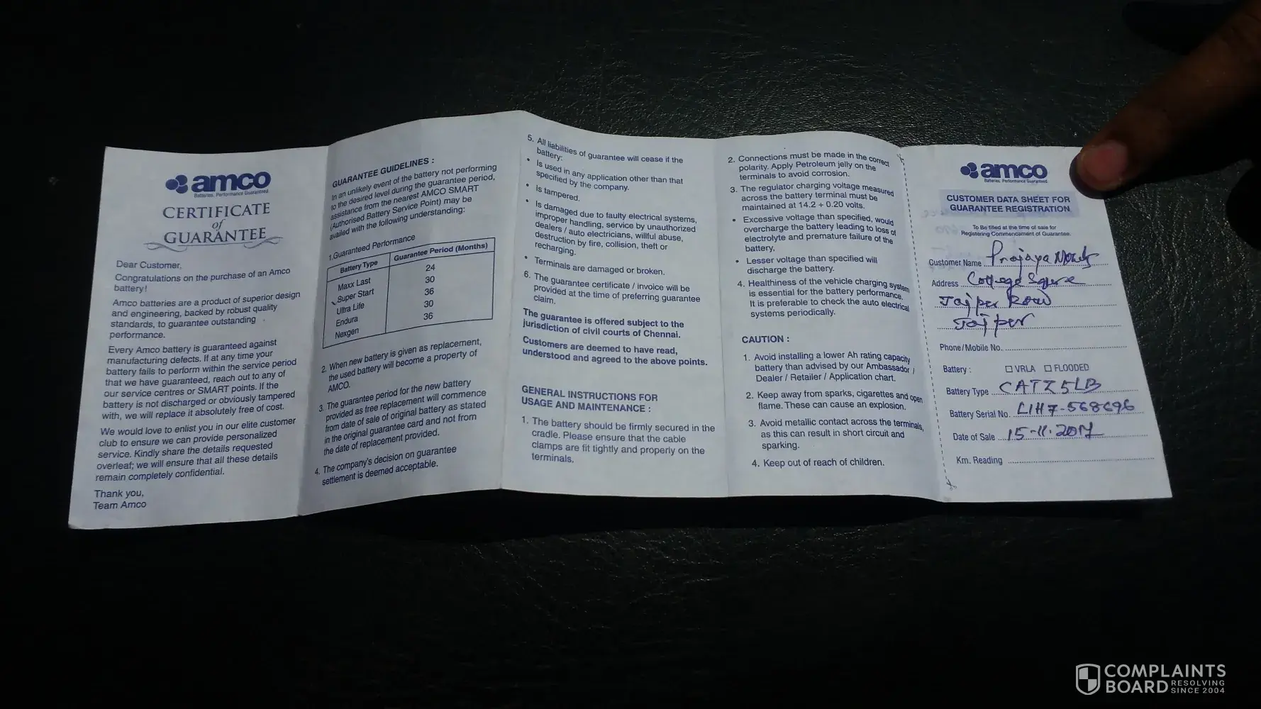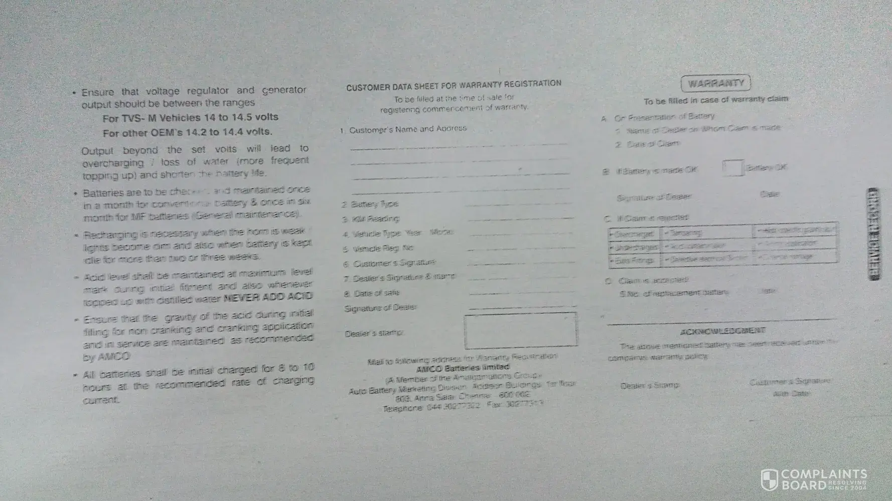 When we approached the service center for this above mentioned problem they are not responding us properly. They asked to go to AMCO battery company which is near to Express AVENUE, CHENNAI. We went to AMCO battery company and they are asking for a letter from the service center where as from the service center they are not providing any letter.