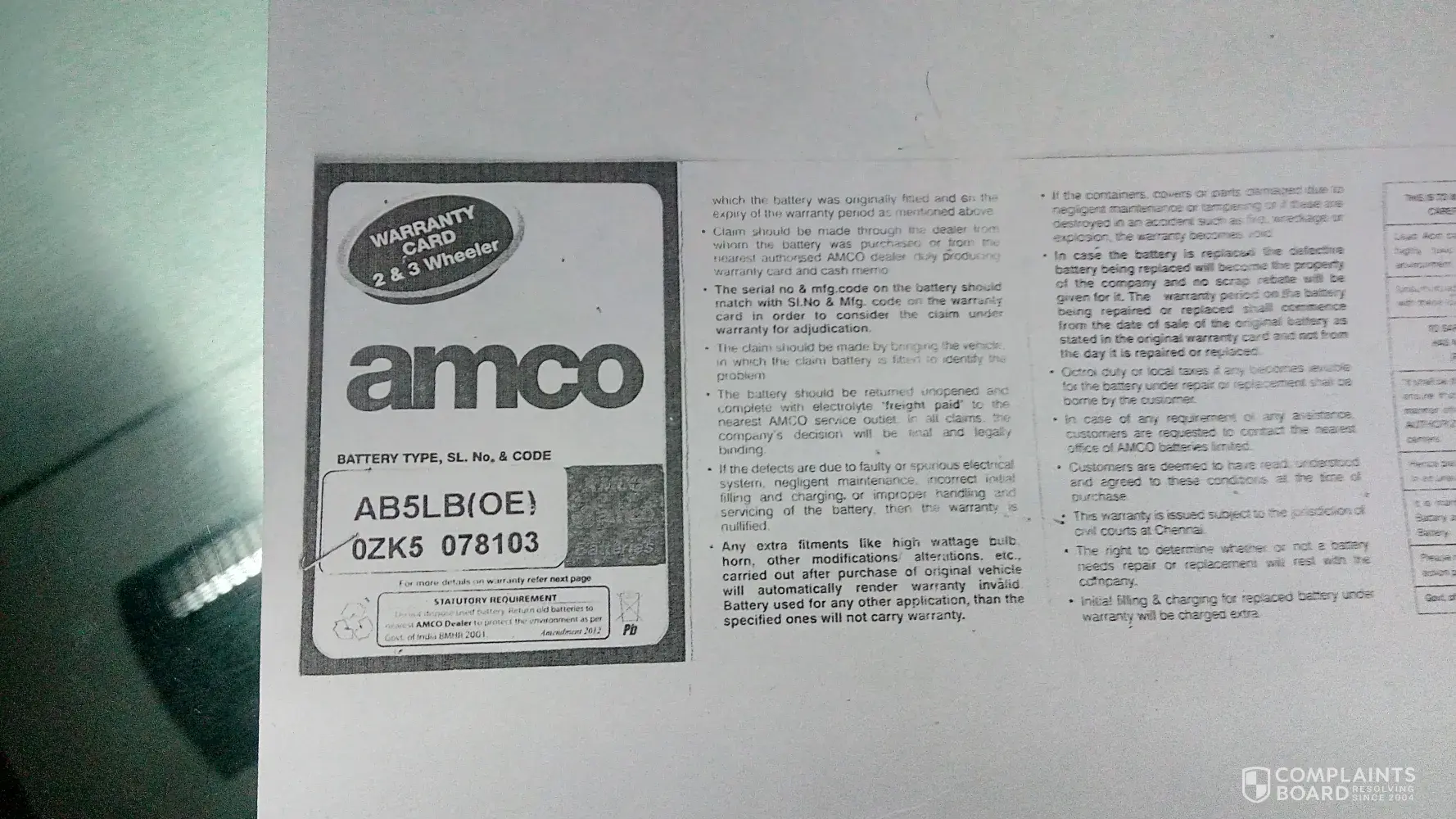 I have purchased one amco battery for my two wheeler (Activa). Details are given below: