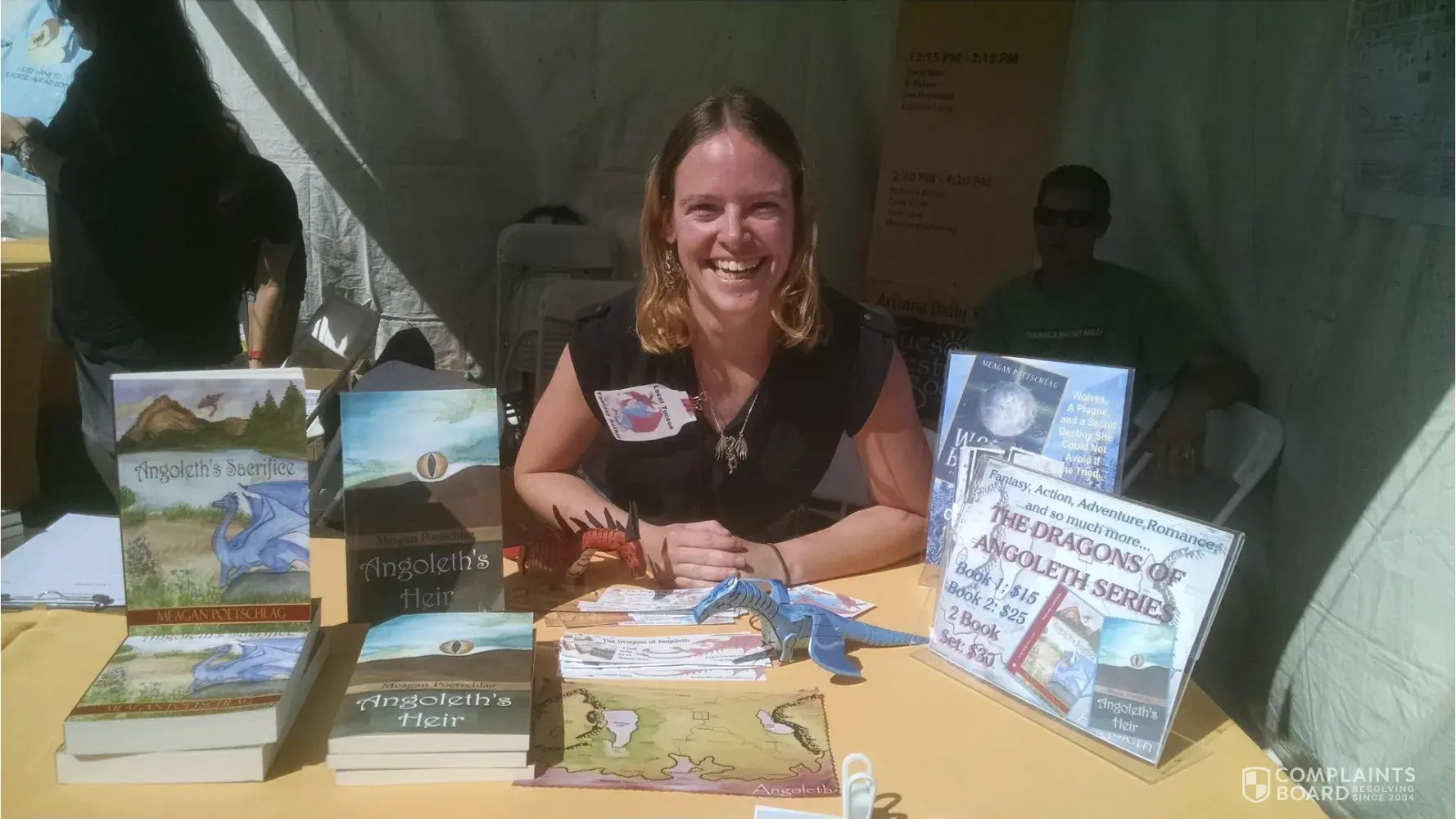 Picture of me with my books on display at the 2017 Tucson Festival of Books. This was the last event I was ever able to attend due to the company going out of business. Picture is proof of who I am.