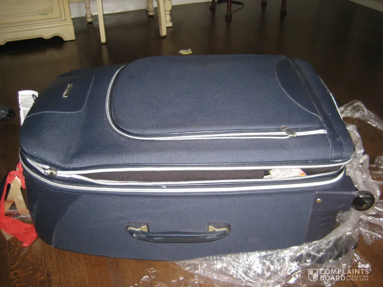 At the photo you can see my 9 bags and the blue one wrapped in plastic and then you can see the blu bag with the broke zipper. When I got home and saw it I was really mad. Roubbers, ladroes, criminosos, jail for this people...