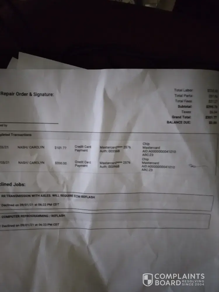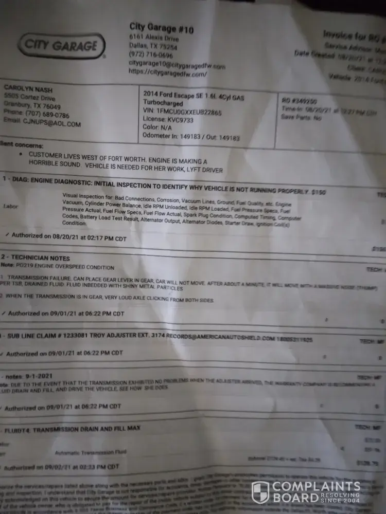 American Auto Shield Failures and promised to their commitment- VEHICLE TRANSMISSION REPAIR
