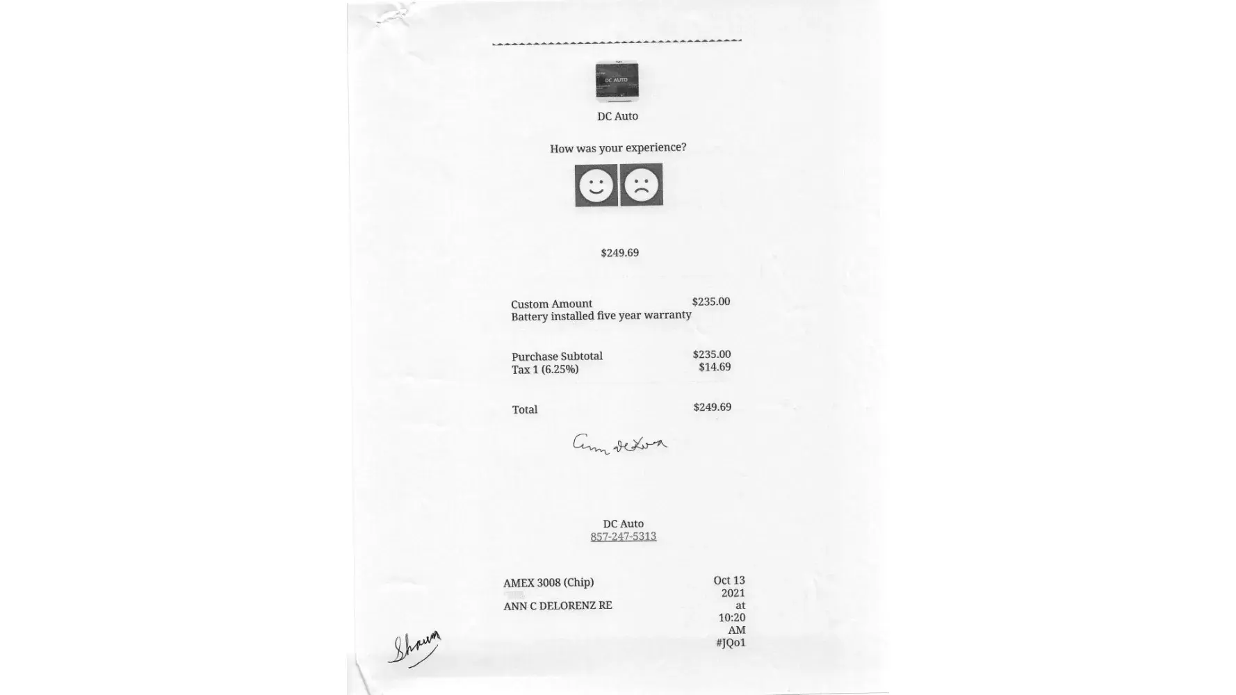 I called AAA on October 13, 2021 because my car would not start. It is a 2017 Jeep Compass. Shawn from DC auto replaced my battery with another one he sold and installed for $249.69. The receipt said 5 year warranty on the battery. I have a copy of the receipt that I was given. The only information on the receipt was the price and that it had a 5 year warranty. The battery itself did not have any markings on it as to model, serial#, etc.