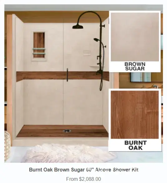 Installer finally gets to our bathroom removing existing fixtures. We left the house during install due to noise and dust. Get home to see the "BURNT OAK" portion of enclosure is more like BLEACHED DRIFTWOOD. Call ABF, and sent pictures. Takes them several days to reply with a FUTURE DISCOUNT CODE on next purchase, without addressing issue reported. I give them 48 Hours and no reply on financial compensation for poor quality control of INSTALLED product. Product also comes from Mexico. Company name should be Mexican Bath Factory.