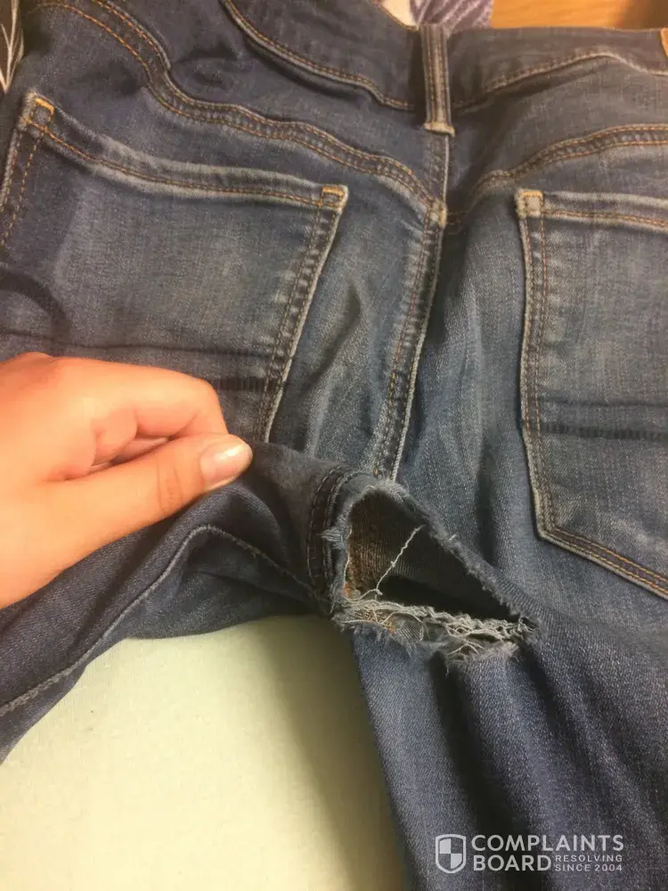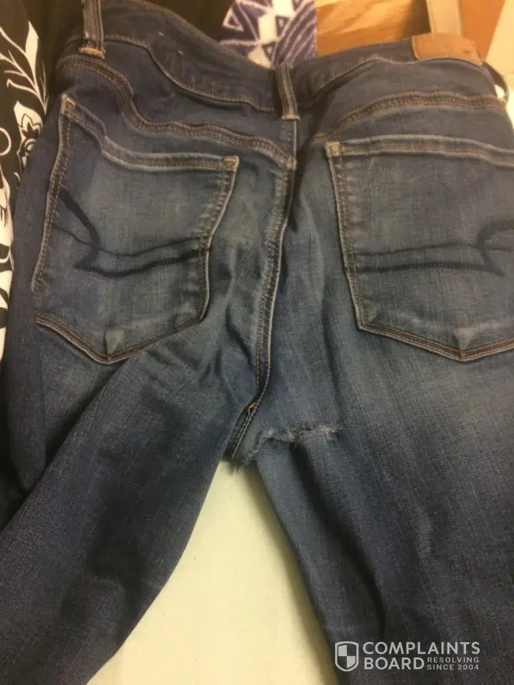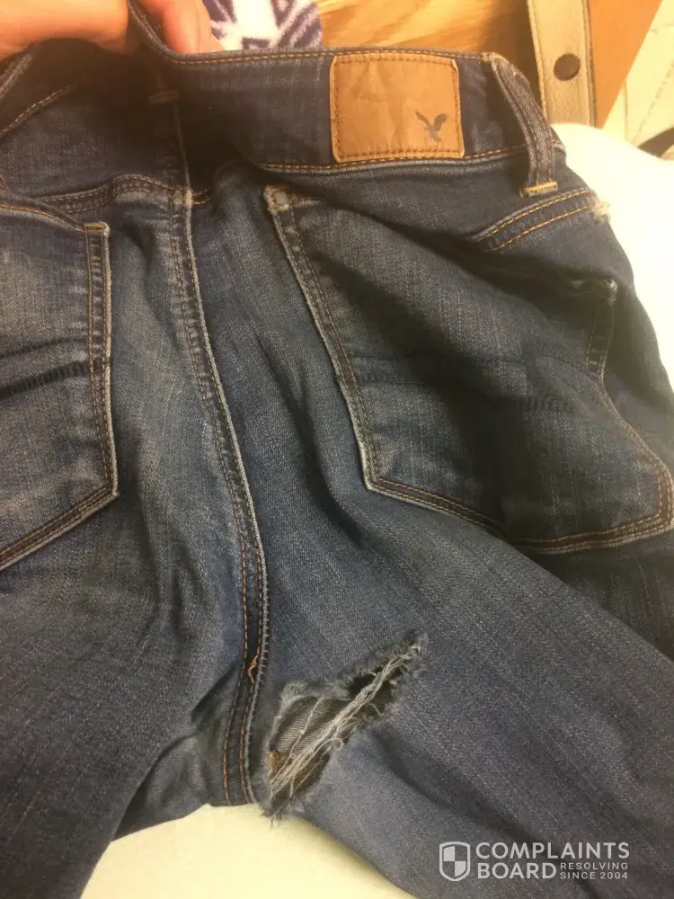 I purchased a pair of American eagle jeans yesterday and I wore them today and as I was pulling up my pants my pants ripped. I buy everything at American eagle. I am very disappointed