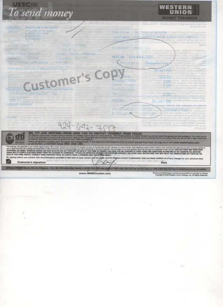 I was really caught unaware of the currency inside the package and when I called and verified this with clark taylor, he told me that he really placed the currency in the package and he was not able declare it. He told me he was in a hurry because of his scheduled trip to venezuela on the same day he sent the package. He asked for my assistance to settle the problem with the malaysian customs since his place of work in the venezuelan jungle will make it impossible for him to settle the payments for the penalties of the package because he has no bank accessibilities in the area.