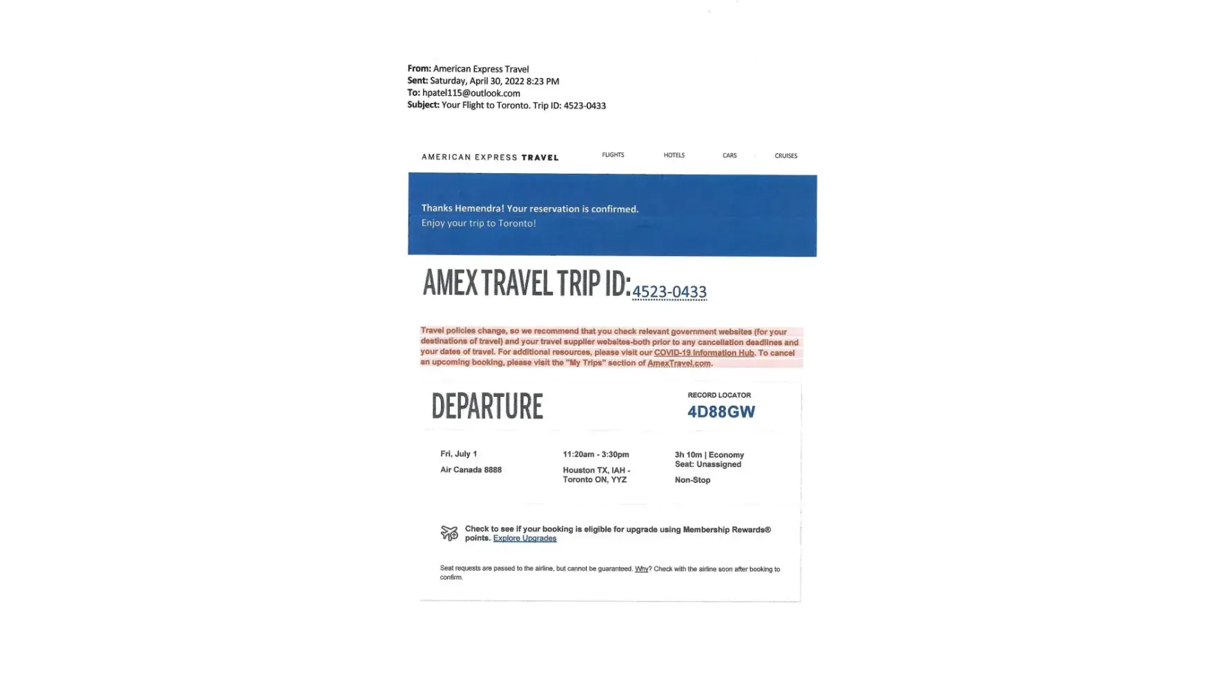 Amex travel ID #: [protected]