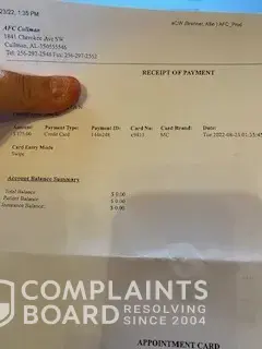 I received a charge of $150.00 from the American Family Care clinic. It is true that I was there and they took my data. But later they told me that they couldn't do it because according to them I was sick and I had to talk to my primary care doctor first and I went back home and then I went to the clinic in Trussvile. They attended me there and I paid $150.00 with a debit card and it was on 02-25-2022 and I have the proof