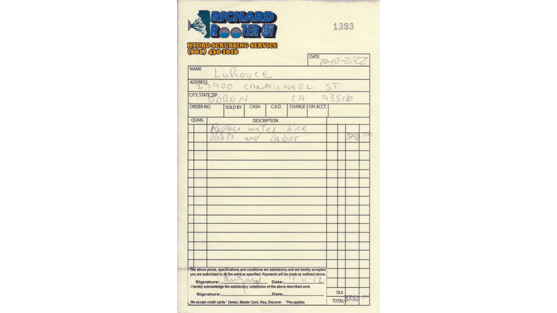 Desired outcome: I want them to reimburse to me the $3,750.00 I had to pay Richard Rooter Guy [protected].