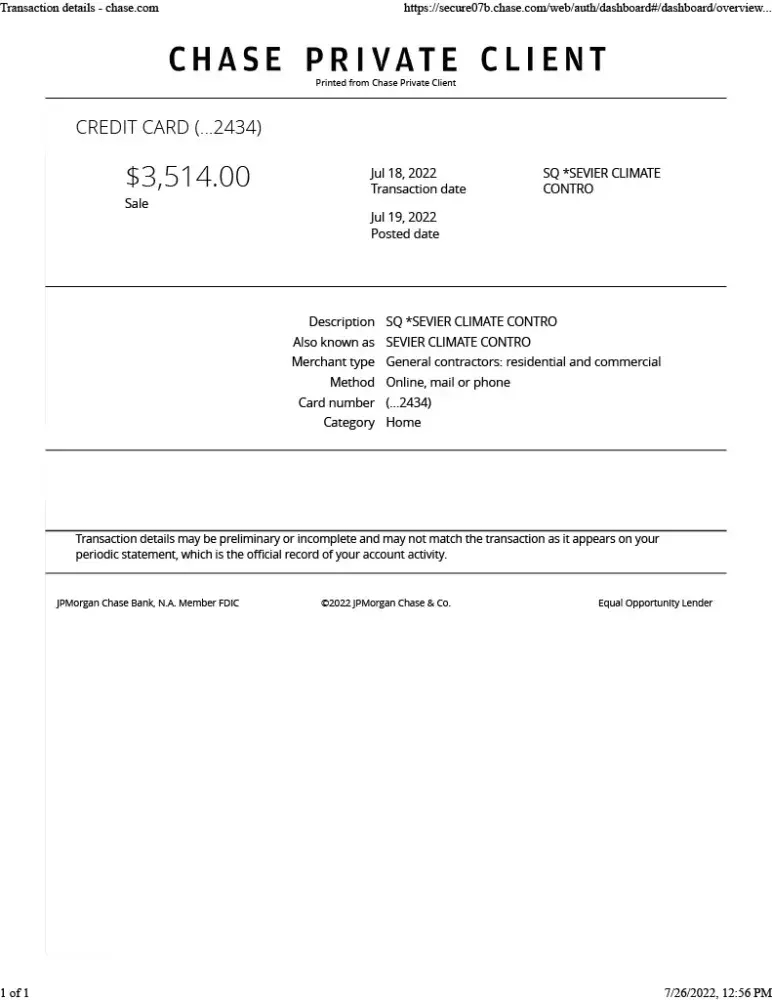 the unit. On Monday 7/11 PREFERRED CLIMATE HEATING &