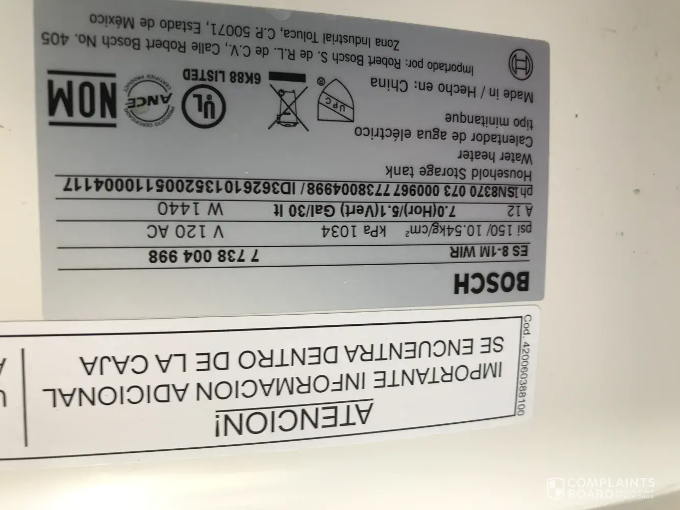 Desired outcome: Reimbursement for the cost of the water heater.