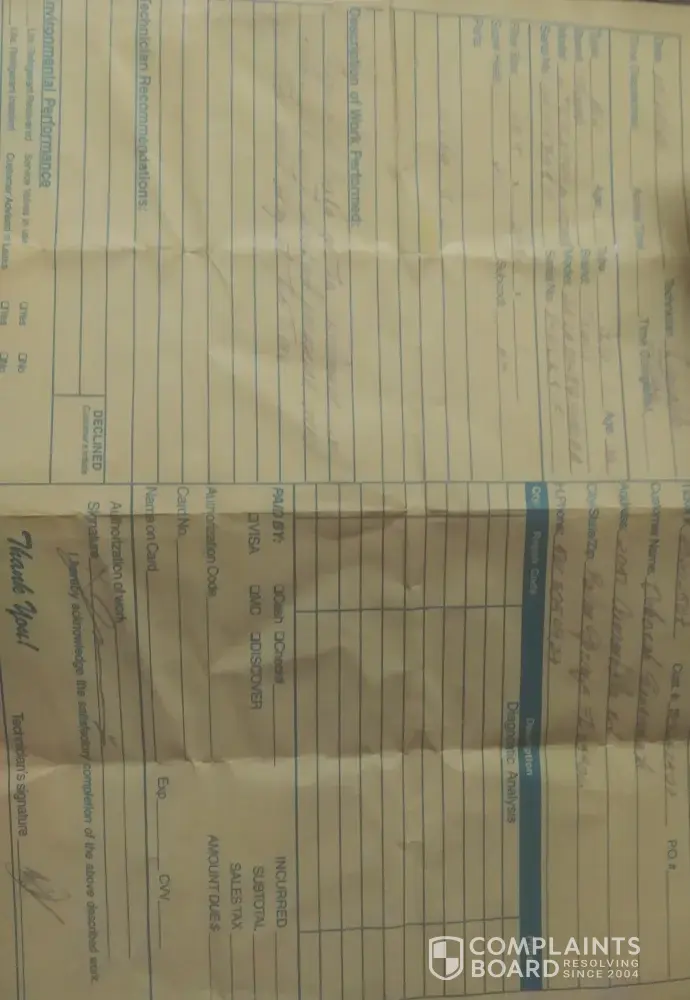 Sears never came out and they swear they did so they will not give me my $106.00 refund
