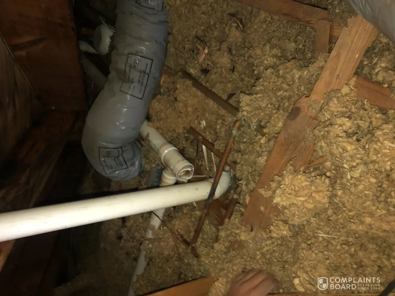 Tenant reported leak in the ceiling. Handyman went in to check and discovered broken pipes. Called in AHS to repair the plumbing leak. The plumbing company (DNB) diagnoses that issue as if somebody stepped on the pipe and broke it. This is a pipe in the attic and this is absolutely not the issue. AHS has denied service on this.