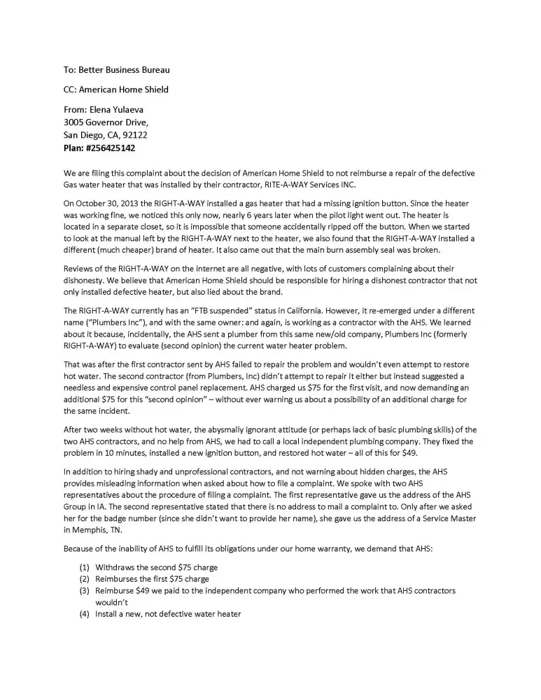 In addition to hiring shady and unprofessional contractors, and no warning about hidden charges, the AHS provides misleading information when asked about how to file a complaint. We spoke with two AHS representatives about the procedure of filing a complaint. The first representative gave us the address of the AHS Group in IA. The second representative stated that there is no address to mail a complaint to. Only after we asked her for the badge number (since she didn't want to provide her name), she gave us the address of a Service Master in Memphis, TN.