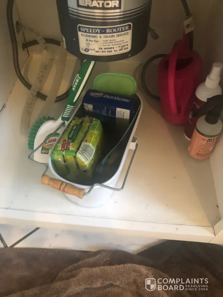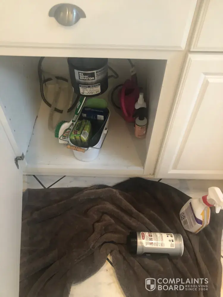 I am writing because this experience has been very distressing and time-consuming and not what I would expect from AHS. I have been unable to use my kitchen since Saturday and the problem has worsened considerably, resulting now in water damage to my kitchen floor, cabinet and personal items that were under the sink. I have done my best to clean up the mess but I know that water damage can have very serious consequences.