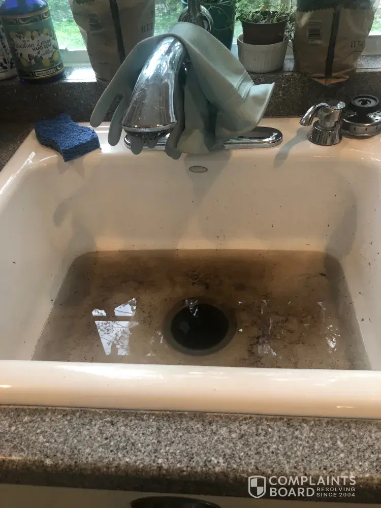 My plan number is [protected]. I submitted a request for service on Saturday, October 13 for a blockage in my kitchen garbage disposal unit. I did not hear from the contractor, Blue Ridge Mountain Plumbing until I called them on Monday, October 15th. They scheduled me for between 12 and 4 pm that day. I waited for them and, when at 4:30 pm they had not arrived, I telephoned them to inquire as to their arrival time. The representative told me that, in fact, somehow, the appointment had not been allotted to any of their plumbers and that I had to wait until today and that it would be another 4 hr window. I asked them for an exact time because I cannot spend the better half of another day waiting for them. My kitchen is unusable and is unsanitary. The representative became defensive and argumentative and eventually hung up the phone. I called AHS and requested that another contractor is called immediately to fix the problem. I was told by the AHS representative that they had to give the original contractor a second chance to reschedule the service appointment. Given the unpleasant tone of the conversation and given that I am a woman alone in a home, I told the AHS rep that I was not comfortable having Blue Ridge Mountain Plumbing in my home and requested that they call another provider immediately. This request was denied by AHS. I asked again. The request was denied. I was told to wait until this morning and if Blue Ridge Plumbing had not responded by then, AHS would find another contractor. I came down to my kitchen to find dirty water all over the floor and in the cabinet under the sink. I am attaching photographs. I called AHS again and after a good 15 minutes on the phone, an appointment has been scheduled for between 12 and 2 today with Advanced Plumbing Services.