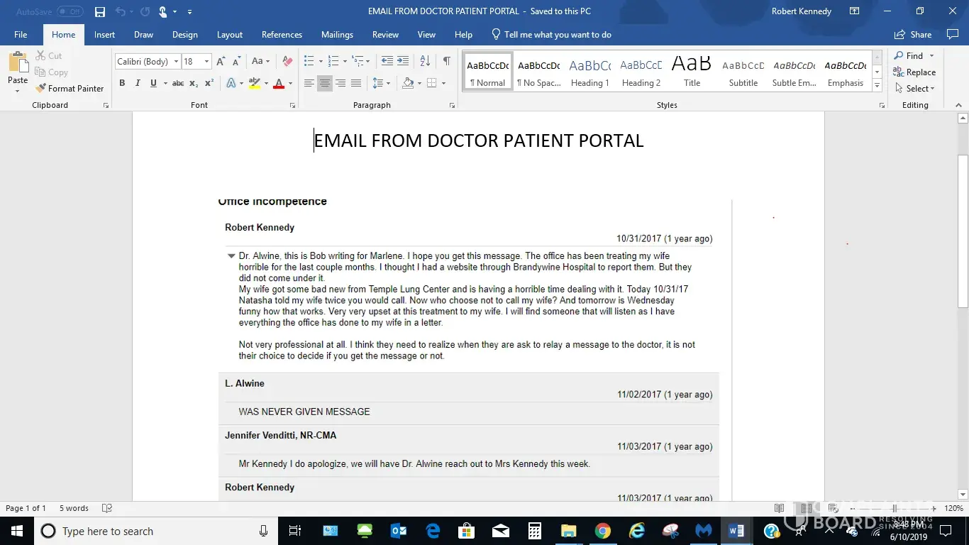 Today March 18, 2019, my wife Marlene received a certified letter signed by Downingtown Family Practice, Dr. Kumanova and Daniel Scott PA, stating they will no longer treat her. This is discrimination and retaliation.