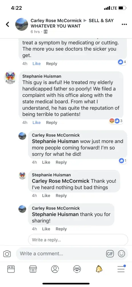 Mr. Craig Kestenberg brought in a Triage nurse in our session, this is twice he has done this without my authorization, against the hippa act. He refused me treatment due to going to IOP and detox that he suggested. He was rude to me, arrogant and refused any more subscriptions. I never have abused any of the medication he has given me. I am on a benzodiazapine that an cause seizures if stopped abruptly. He basically said he's done with me and left me on these horrific mediations and I am completely stressed over this. Just the mere fact that he told me this triage nurse was his new partner was a complete lie. I think this warrants an investigation, this is a federally funded care clinic, they change employees like you change your socks. I am seeking media attention on this as well as an attorney. I already filed with the AG, Hippa, APA, better business hope this will be investigated.