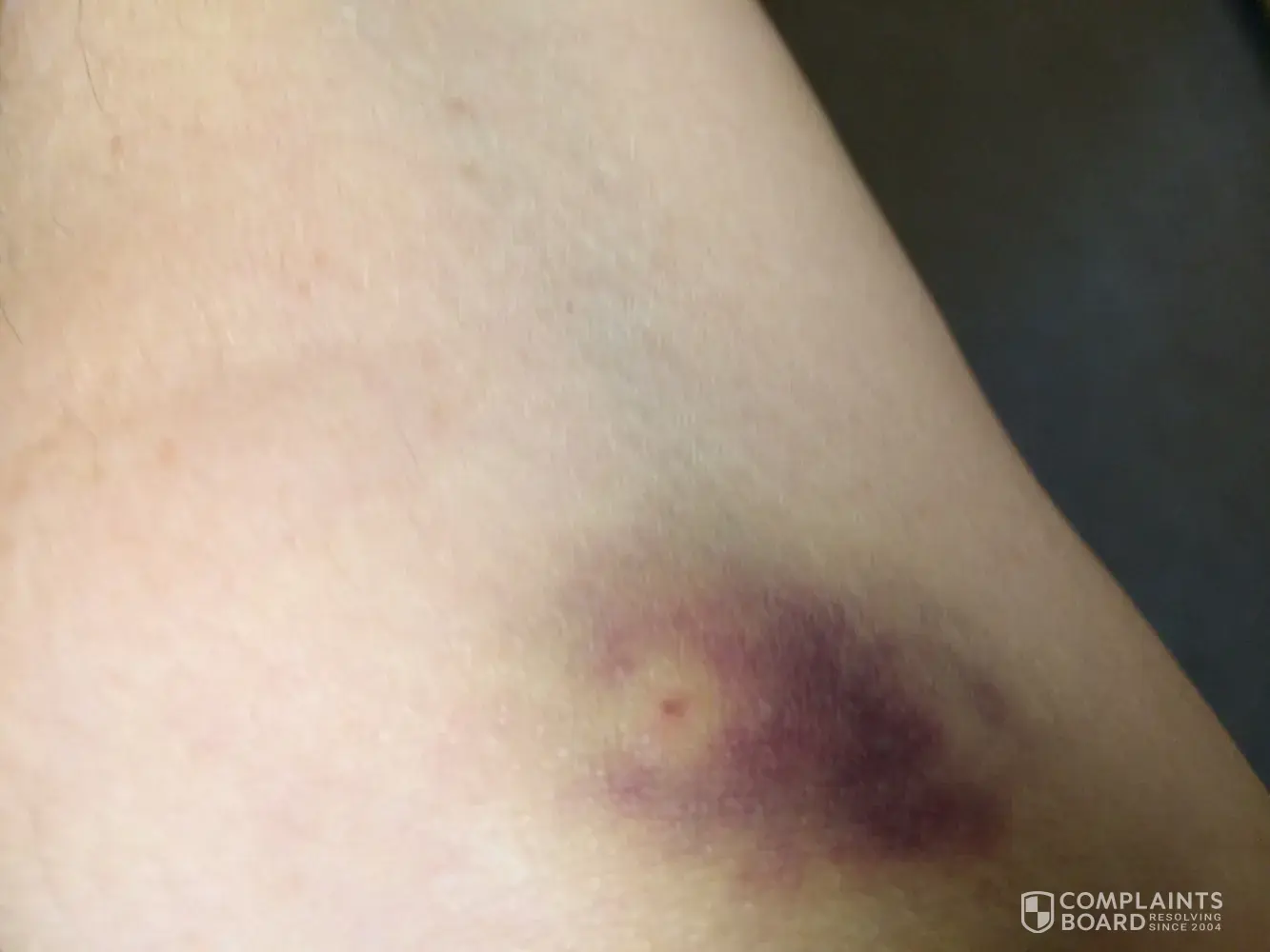 I woke up today with a huge bruise and a sore arm. This has not happened prier to this donation