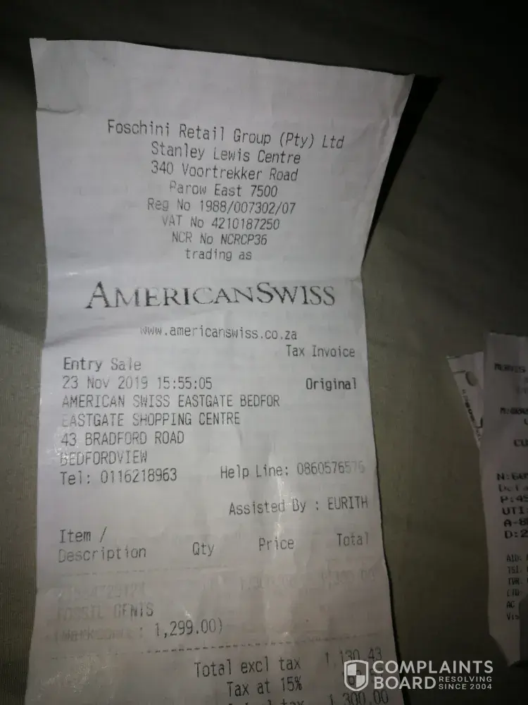 American Swiss Patetiese en mees ongeskikste mense wat daar werk het geen kliente diens nie