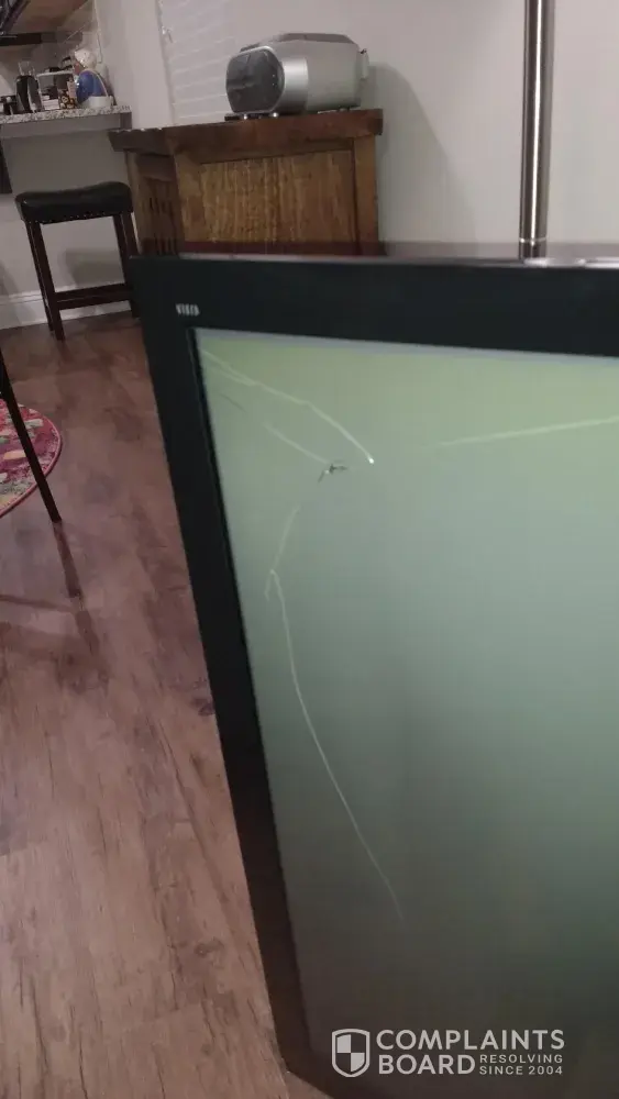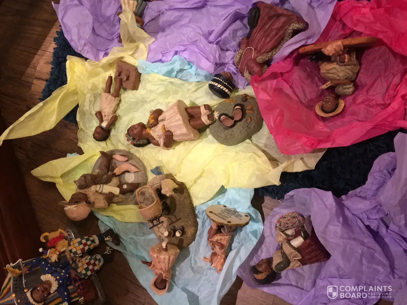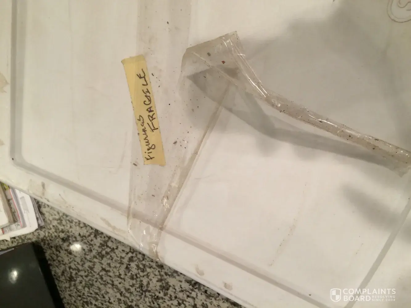 I began to go thru items. So many of my signed collectibles were broken and destroyed, very few furniture and accessory items were intact. They were chipped, crushed, dented, broken. Many items missing-heirlooms, my collectible shoe items, Christmas decorations, kitchen pots and pans, new coffee maker and roasting pans still in original boxes, artwork. My husband unwrapped the 65" TV and to his horror, the screen was cracked from end to end and the back was dented in. It appeared that our items were just thrown into the trailer unsecured without anyone caring how we received them. My husband took photos of the TV and sent them to Sam. During one conversation my husband said he would drive to So CA to retrieve our missing items and was quickly discouraged from doing so by Sam.