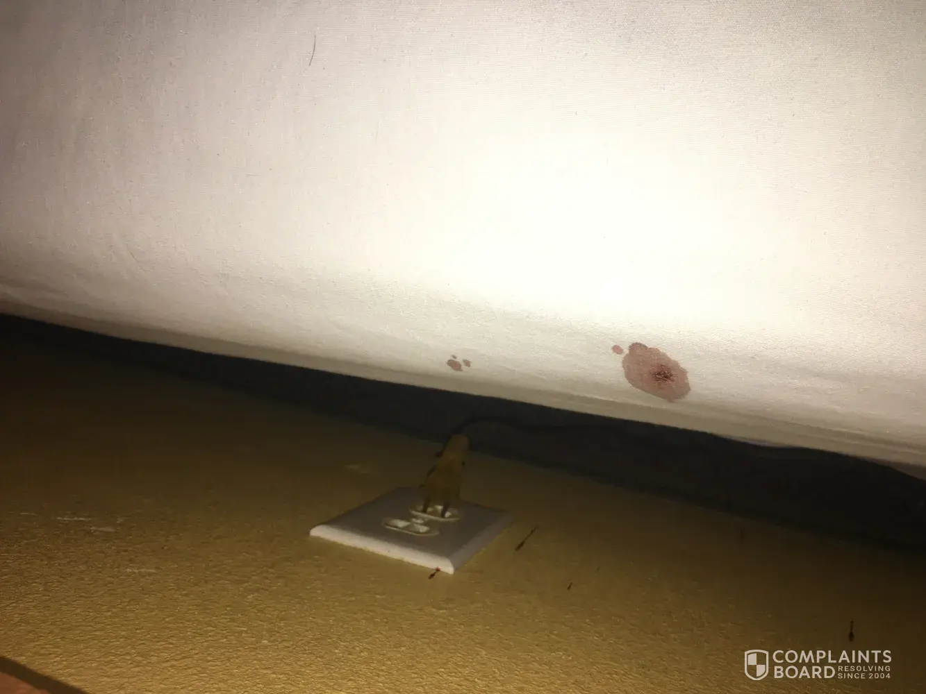 I got ready for bed as soon I pull the sheets back I notices a res round stain I shine my phone light and it was blood on the sheets I look up it's blood on the wall so I call the front desk immediately I ask when was the last time they changed sheets she said today I said no ma'am it's blood on the bed she told me no not tonight change sheets im the...
