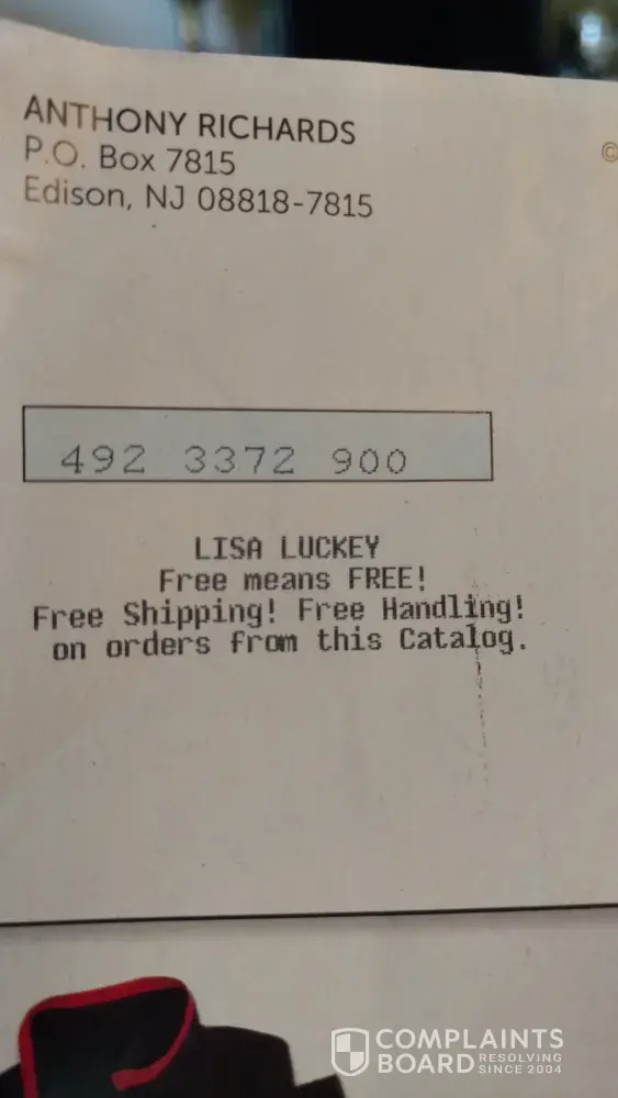 Catalogue has stamped all over it that the shipping is free from this catalogue. Order form also says free shipping. Order arrived and I was charged shipping. They disputed that shipping was free even though it's all over the catalogue that it's free. Big scam! Most customers won't even notice they've been charged. This is catalogue number 492 3372. 900.