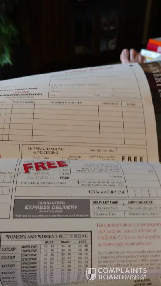 I ordered two dresses from Anthony Richards, and the pop-up lead me to believe that I could get free S&H. By the time I realized what was going on, I had a "free" offer for a month, but would be charged over $10.00 a month automatically to my credit card every month thereafter. What a come-on. I don't order anything every month. Secondly the dresses I ordered and received were of poor quality and the color of one was no where near the catolog illustration. To add insult to injury, I got a phone call from someone associated with them who wanted me to read all about discounted health insurance, and would not take NO for an answer. Now I can't figure out how to cancel the blooming Insiders Club. What a racket.