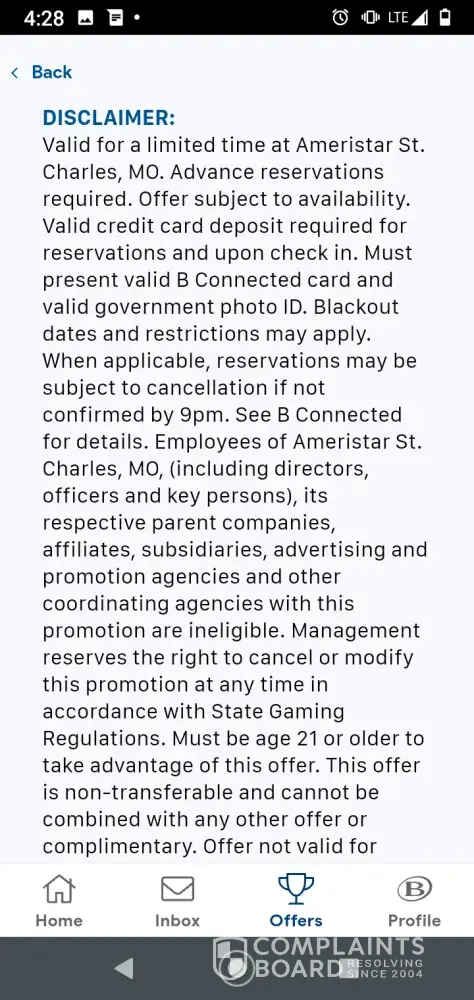 Ameristar Casino’s earns a 1.2-star rating from 0 reviews and 27 complaints, showing that the majority of patrons are dissatisfied with gaming and entertainment experience.
