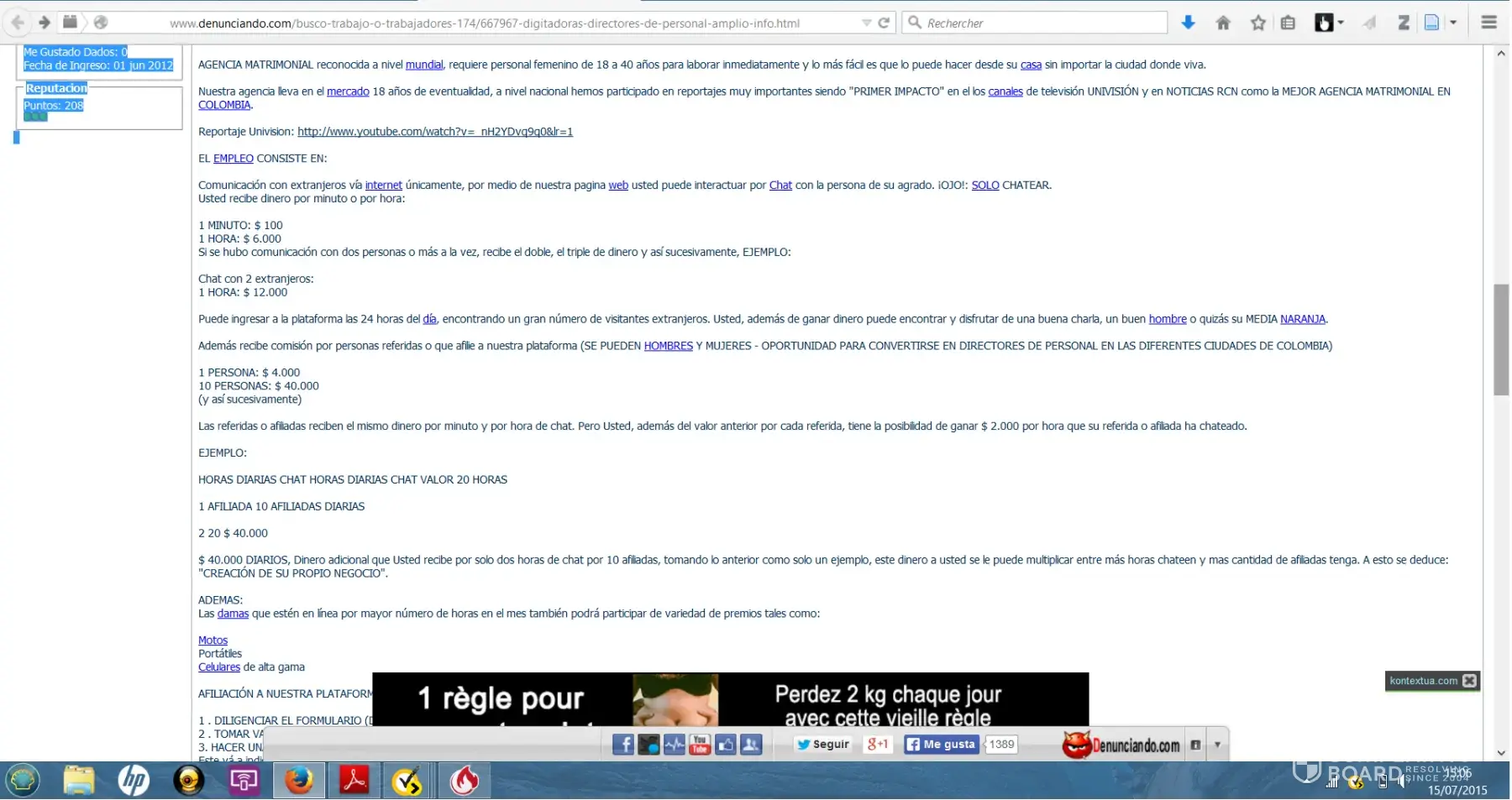 On exemple in spanish: The Web page in Colombia of the local agency : they recruit pay woman from 18 to 41 to chat with man 1 mn = 100 pesos. They can chat with 10 men a the same time and tehy are paid x10 and they are not allowed to exchange email adress or skype or Face book.
