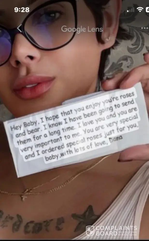 I had been talking to Patti for over a year. I sent her some roses and teddy bear last year. When she received the gift I was sent a email with a picture of her holding the gift. You are allowed to write them a letter to send with the gift. I checked out the letter on google lens and you can tell it’s a fake letter and was photoshopped. I’m including a...