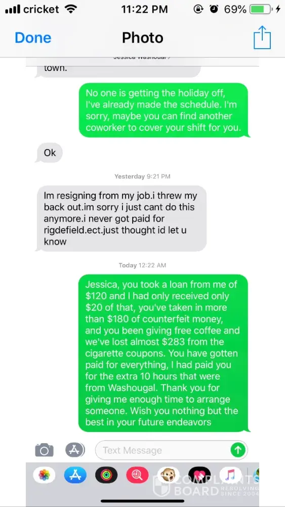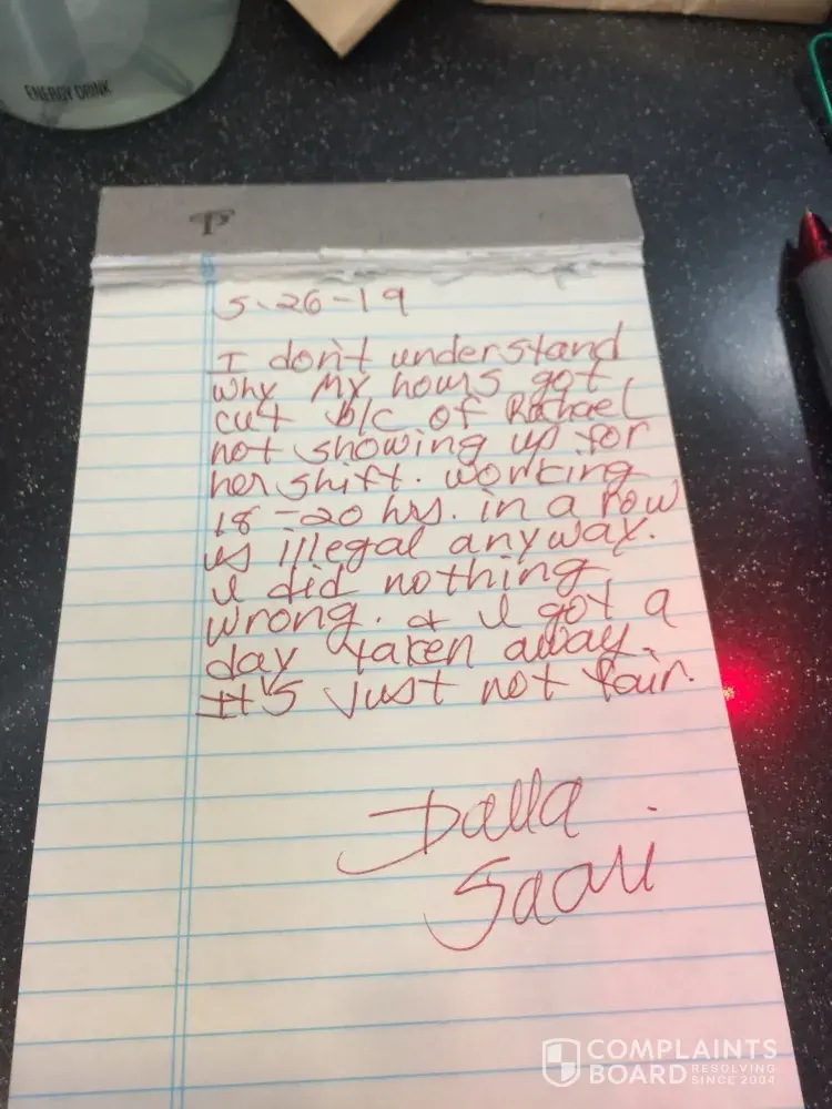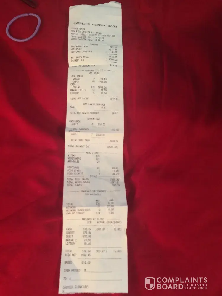 Read full complaintCashier