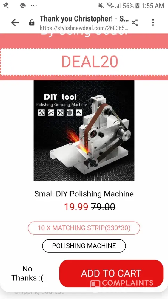 When u come across the picture on thete website it says polishing machine 19.99$ when its clicked on the belts for the polishing machine. They did it like that to mis-lead people into thinking the machine was 20.00$ i contacted them b4 they shipped it to me to inform them the belts r useless to me & they denied me a refund & r sending me the belts i have no use for knowing that. They r greedy american [censored]s that r playing a role in destroying our country along with the politicians. They obviously don't care about there customers or return business bcus in small words they told me so sad to bad. i just wanted a refund i submitted a screenshot of the add that mis-lead me into the purchase.