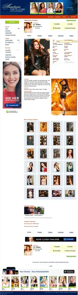 I think this is very hard for me to even comment on the site because I have complained so many times to Anastasia date and how women always makes up excuses to never want to meet and hear you are spending hundreds of dollars and when you meet that right one she has you by her grasp! I have talk to the same girl for over a year and a half and every time I ask her about going out on a date or even meeting each other. She is pre-programmed to change the subject and she sends me photos that I have to pay to look at and I believe I’ve only seen three because I’ve seen where this is going And I realized I’m never going to meet this girl because she’s being paid and for her being a doctor I was so sick that I was on hospice and they didn’t give me that much time to live in this dating site didn’t even care when one of my nurses was talking to them And this lady who I fell in love with Nuttallia I hardly knew anything about medication and she would send more pictures. I didn’t even care about my health and one thing I noticed is that you can’t even find this woman if you do a reverse image, but the background Tells you everything and she said that she lived in Odessa Ukraine but she doesn’t love you and she is not Ukrainian, but actually a Russian. I think the final straw is when I went onto Facebook and Anastasia date page had a girl with her ID number and everybody was commenting except one girl stood out and I remember seeing her on Anastasia dating site and she said runaway men’s, because this site paid me to talk And I signed a contract and to not waste your money because you will never meet anyone and I took screenshots and I even told her thank you for being honest and that was after about $4800 later that I had someone truthful and then I went back the next day and her comment, and her profile had been completely removed And I knew right then and there this site was a scam. How are you today? Plus they have no success stories and you don’t actually see people meeting each other or any marriage testimonials and if they do it’s fake but I’m disabled I’m very sick I did make it through for now And I want all of my money back or I am going to get an attorney and I have already spoken with one and with all the evidence that I have against them plus they have an office in New York and I can’t say what happened I thought I had a detective go over there and take a look And what he told me was a shock and so I am glad I screenshot and kept everything and my attorney has most of it so I will go to court and I’m guaranteed I will win with the damages caused and it was because of that girl and she was being honest plus, there’s another lady on there that I met on Telegram Another social site but it’s not dating and she’s a singer this I do know and she’s very popular in Ukraine but she told me that she signs up for all these dating sites because she gets paid and she should never have told me and she’s also married, but she doesn’t say anything And she also told me that 75% of the girls don’t even live in Ukraine and they’re just looking for money but I will just tell you her name is Vika and she has given me enough proof that I have screenshot and print it off and give me to my attorney But I want every single dollar that I spent or I will start a class action lawsuit and right now I have over 10,000 signatures if I wanted to but I want to handle this on my own with my attorney and let’s see what happens and honestly this should not be called Anastasia date it should be called Anastasia chat site that we scam you and you have to pay to talk to females who are liars and don’t live where they say they do and they don’t use real names and their professions are not true and the list goes on and on, and I almost had a nervous break down and I got so sick because of this site and the way they treat you, but in the end I will come out victorious and I hope I can save everybody from not spending any more money on this site to find love because it never is going to happen And I got so sick because of this site and the way they treat you, but in the end I will come out victorious and I hope I can save everybody from not spending any more money on this site to find love because it never is going to happen!