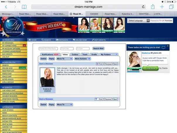 2) Having an actual communication with a woman, whether by chat, video chat, by email or phone costs $ that adds up fast. I am embarrassed to say how much I've spent there in the past few months. Thousands! Easily. So many beautiful young women interested in you. Yeah, right. Don't believe it.