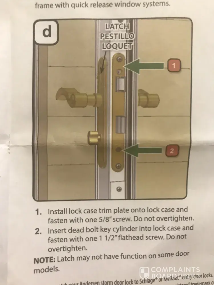 On 8/6/19 I purchased the Anderson Security Storm door EZ 4000 and matching Handle set. During installation my contractor could not install the Lock case trim plate (item d in diagram)because it wouldn't fit, it was not the "matching /fitted" handle set for the 4000 EZ DOOR although during selection in store and on packaging it was marked as being the handle set for the EZ 3000/4000 door. A call was placed to first Home-depot- who started all issues with the product needed to be addressed with Anderson/Emco. A call was placed to Emco customer Service and they stated a replacement handle set would be sent. At the end of the call I attempted to remain on the call line for the survey, however the representative refused to hang up the line stating " the representatives taking the survey were all busy that someone would return my call ". Which never happened. Upon receiving the replacement handle set it too could not be installed because it was identical to the original. There is obviously some type of manufacturing defect for a matching handle set not to fit the door for which it was designed to fit. I'm very unhappy with this company with their customer service practice which seems to deny the ability to file a complaint. I paid full price for the Anderson Storm door EZ 4000 and matching handle set which cannot be installed. Therefore my remedy would be to have a certified installer come with the CORRECT part to my home and correct this problem, send the correct part, or I will seek full refund of both the door and handle set. For a company of your size with all of your resources should be able to simply rectify this problem without further delay. I am a retired consumer on a fixed income and a veteran that has full access to social media to rant about your company and how it treats its customers. However I don't want to utilize my time nor my energy for this matter that should be easily resolved.