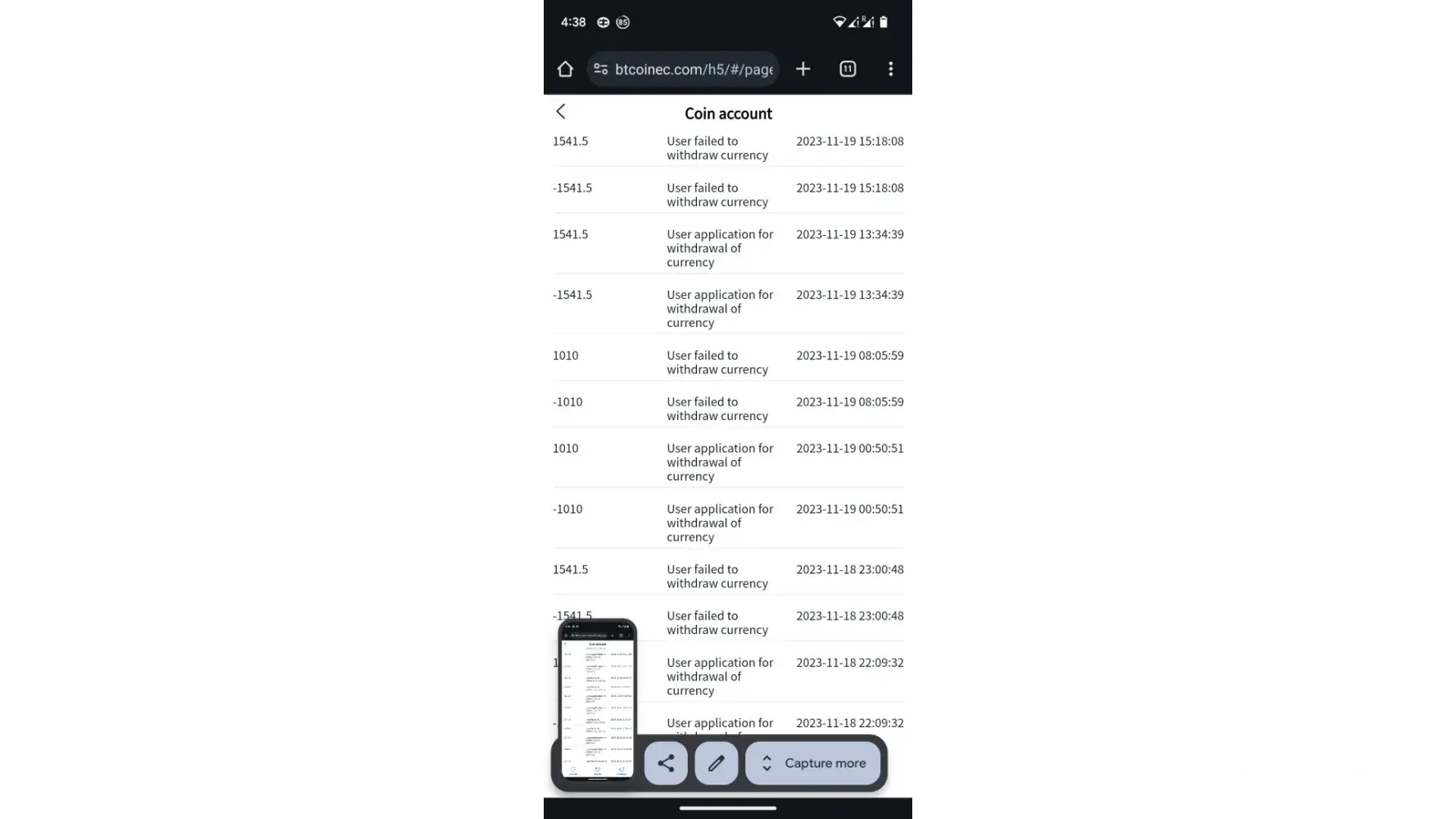 I want to complain about the below trading platform :https://www.btcoinec.com/h5/#/pages/assets/tradeAccount?currency=3&type=change