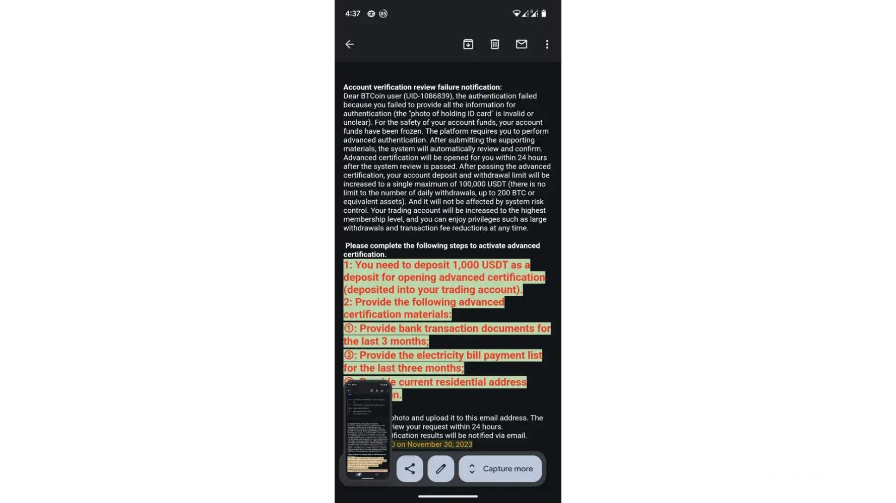 However now again i got message asking me to deposit 1000 usdt for advanced verification.