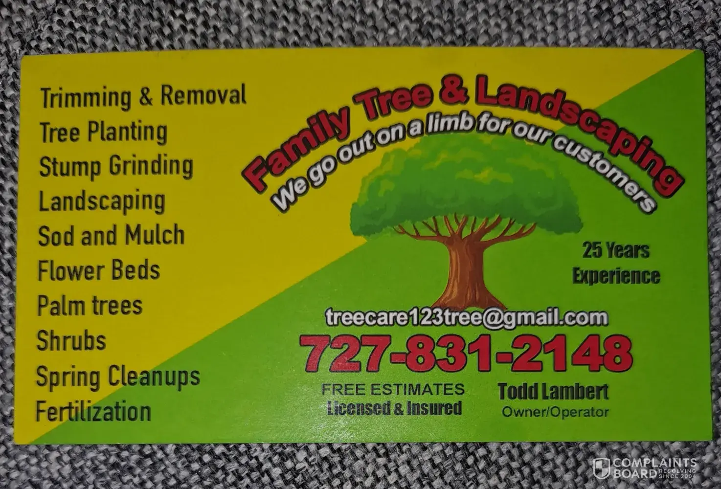 Terrible business also operating under the name "Family Tree & Landscaping".