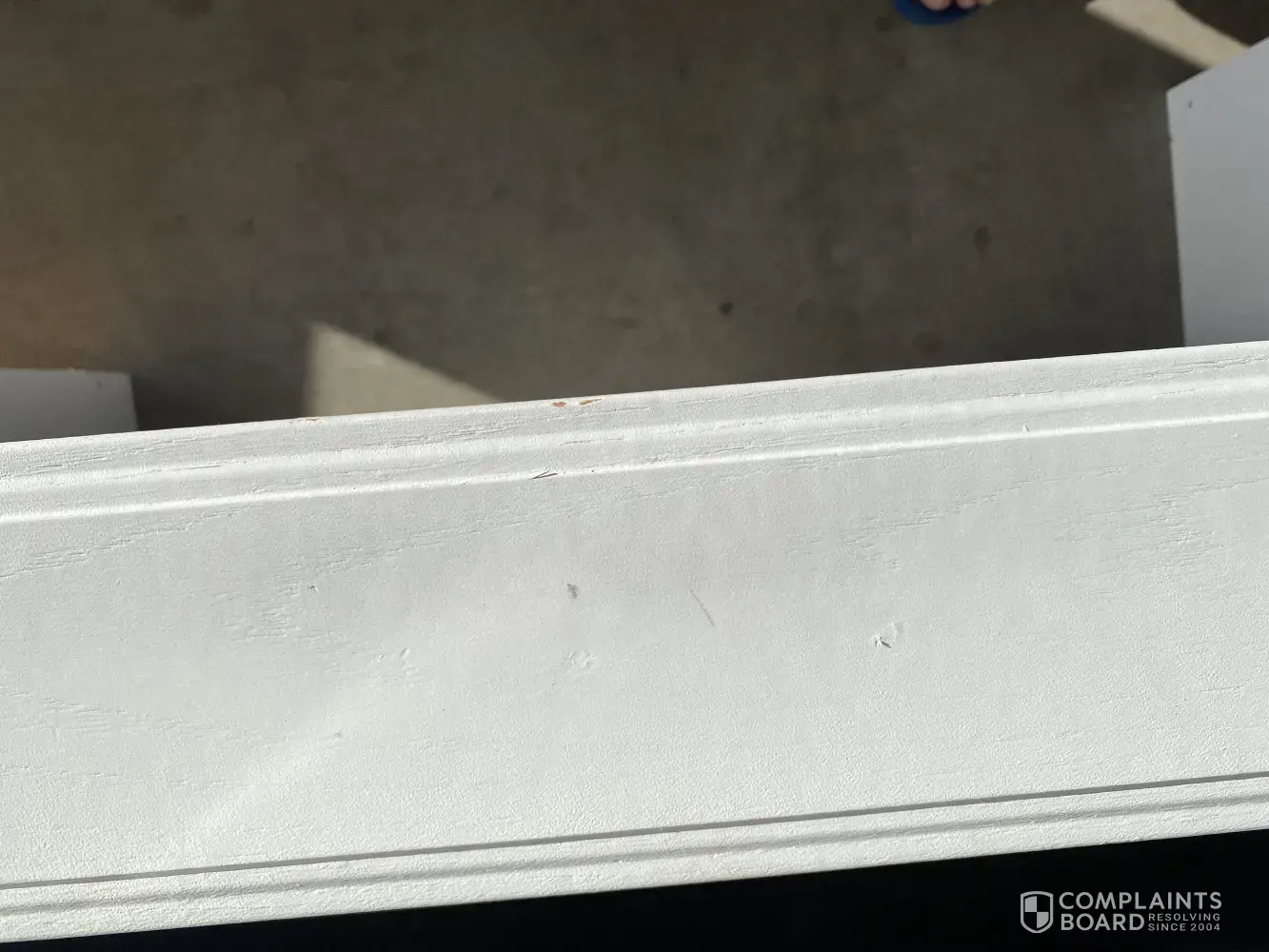 These issues are about damage of threshold of french door, about caulk at corner failure and at step area, and finish nails across fascia board at front of deck that are showing and look like chicken feet...as they filled with crayon that melt/evaporates.