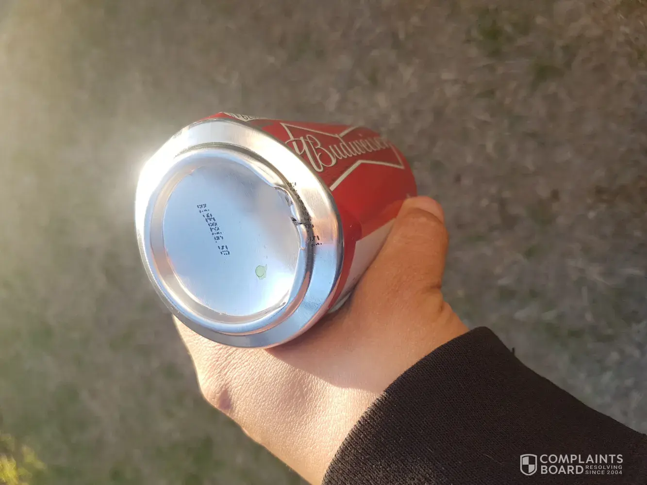 I reached into the box and pulled out an unopened, empty beer. It looks like the case was dropped and the bottom tore open. This is not the first time this has happened although it is the first time I have complained as it happened right before the long weekend and I am already at our campsite. I have not checked the remainder of the box. I would like to have this resolved as soon as possible as my husband and I are avid Budweiser consumers and do not stray from the brand.