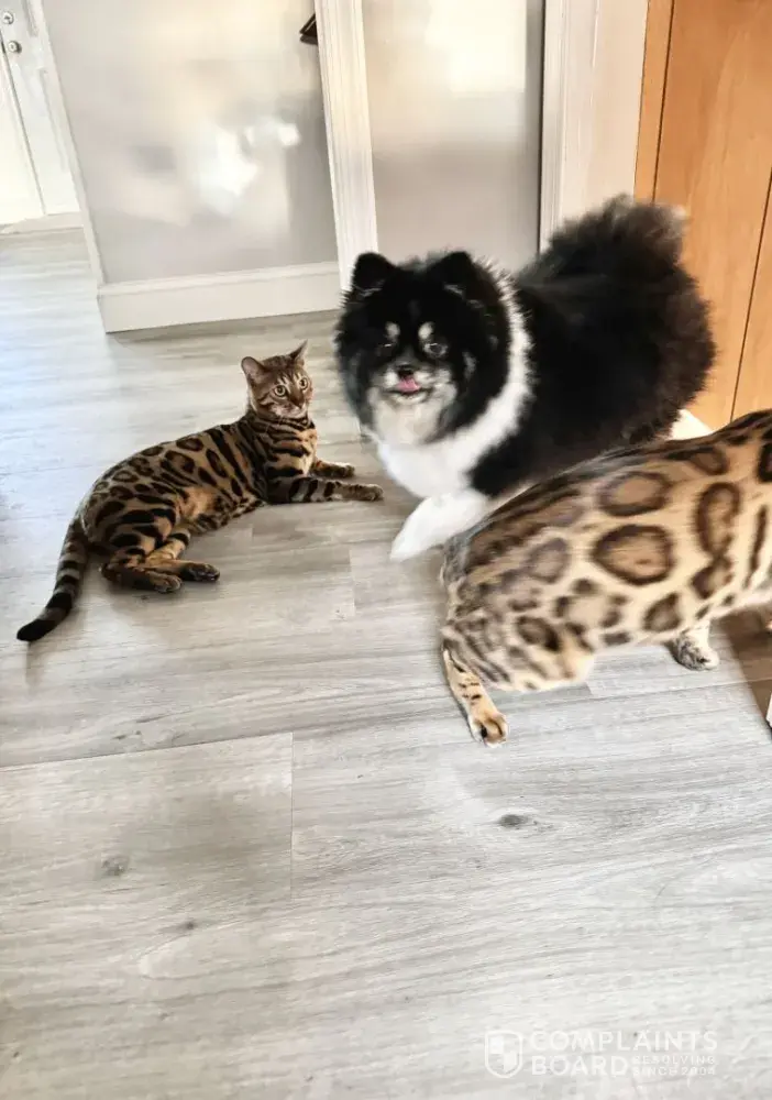 I’d have to completely disagree with this awful review. I have 2 Bengal kitten littermates & Vicky and I still communicate. If I have any questions I know I can always reach out to her to get a helpful answer. The Veterinary I use said they kittens are stunning and very healthy. I also have a boxer who’s 8 years old, a 2 year old Pomeranian & 2 children ages 9 and 11 years old. The kittens have not caused any harm or issues in my home. We feed the same raw recipe the breeder used in addition to the kibble they are fed. They are growing beautifully.
