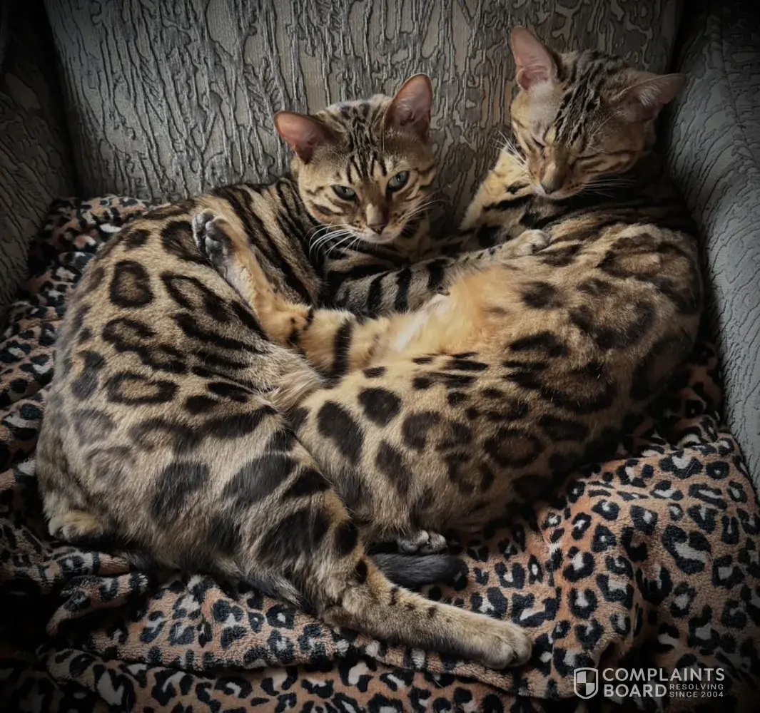 My Bengal pair from Victoria are over a year old and till this day, she will respond if I have a question or if I reach out to her just to simply update her on the gorgeous pair of sisters she sold me. She is easy to reach out to and she is patient and helpful when responding. My bengals are healthy, beautiful and I cannot say good enough things about this breeder. I have recommended her to plenty of folks & if I ever wanted another Bengal, I wouldn’t hesitate to reach out to her.