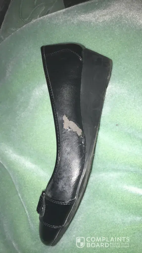 I recently purchased a pair of wedge heals and the material is coming apart and falling off. I am very disappointed with the quality of the shoe as the brand has a good reputation. I find the particular shoe extremely comfortable and wished it had lasted. I would like to be sent a new pair to replace this pair. I hope you can resolve this.