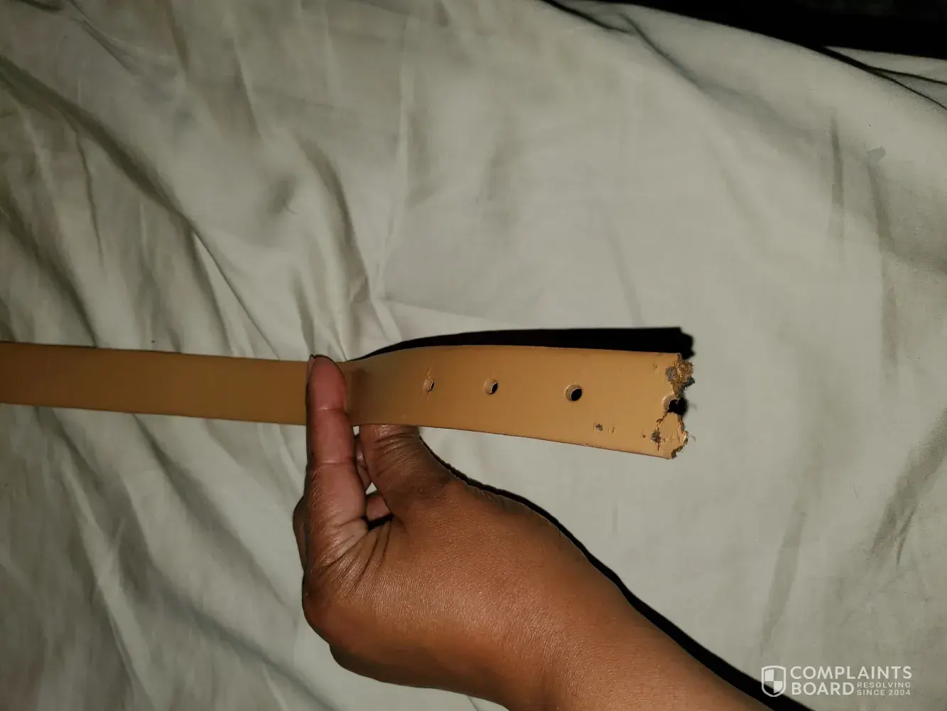 I purchased a nice tan colored belt, but then it broke at the tip of the belt. Please advise if you are able to repair or replace . Please see the attached pictures below.