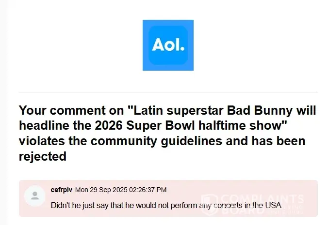 On 9/29/25 at 10:26am I posted a comment stating, "Didnt he just say that he would not perform in the USA" and it was rejected claiming it violated community guidelines? I noticed that others had similar comments regarding the person in questioned in story and there comments were not rejected.
