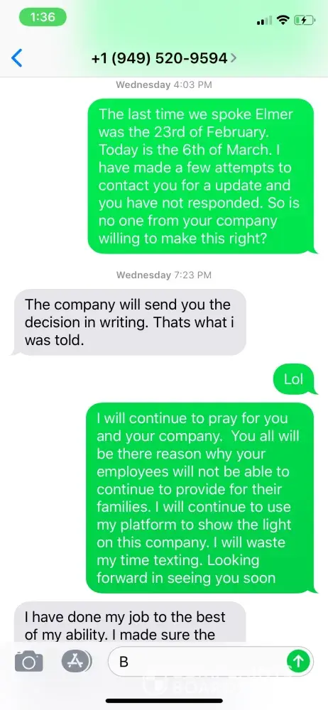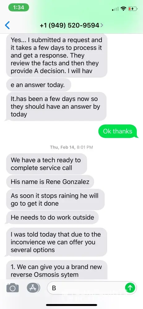My water system hadn't worked in 10 months. Just 2 weeks ago I finally had a tech to come out to make the necessary repairs. I had been speaking to elmer and I promise he asks like he is totally clueless to company policy, moreover clueless about his role in the company. He offers enough excuses that will allow you to cash them all in for a purchase of a new car.